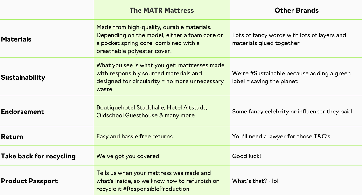 The MATR mattress combines luxury hotel comfort with circular economy design.